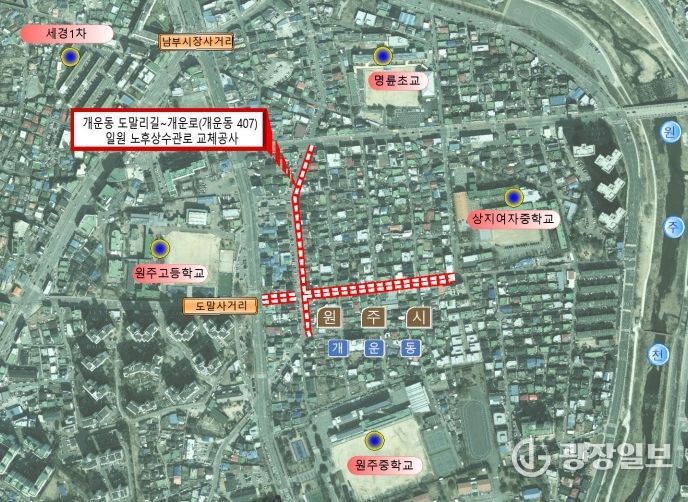 광장일보 이현나 기자 | 원주시상하수도사업소는 깨끗한 수돗물 공급을 위해 5월부터 ‘개운동 도말리길-개운로 일원 노후상수관 교체공사’를 추진한다.