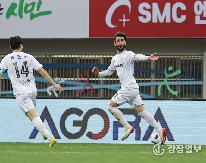 광장일보 주재영 기자 | 김해FC2008이 충북청주FC와의 원정 경기에서 경기 종료 직전에 터진 극적인 동점골에 힘입어 값진 승점 1점을 획득했다.