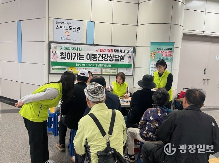 광장일보 주재영 기자 | 인천 서구 검단권역(완정ˑ검단ˑ아라) 건강생활지원센터는 지난 17일 인천지하철 2호선 검단사거리역에서 지역 주민을 대상으로 찾아가는 이동건강삼담실은 운영했다고 밝혔다.