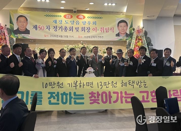광장일보 주재영 기자 | 고흥군은 지난 19일 서울에서 열린 재경 도양읍향우회 정기총회 및 회장 이취임식에 참석해 고향사랑기부제 홍보 활동을 펼치며 출향인들의 고향에 대한 관심과 참여를 이끌어냈다고 밝혔다.