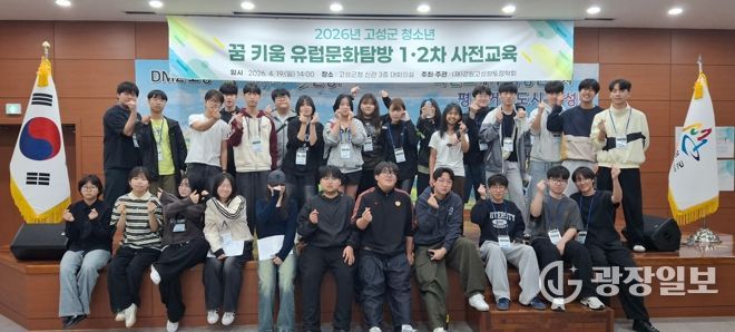 광장일보 이현나 기자 | 평화 경제 거점 도시 강원 고성군 산하 (재)고성향토장학회는 지난 4월 19일 오후 2시, 고성군청 신관 3층 대회의실에서 ‘2026년 상반기(1·2차) 고성군 청소년 꿈 키움 유럽문화탐방 사전교육’을 성황리에 실시했다고 밝혔다.