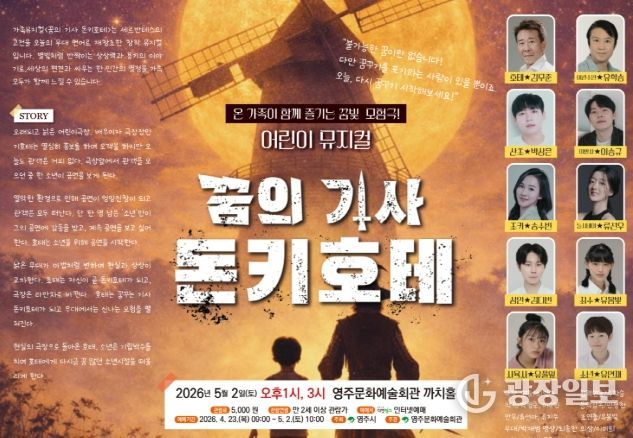 광장일보 주재영 기자 | 영주시는 오는 5월 2일 오후 1시와 오후 3시, 두 차례에 걸쳐 영주문화예술회관 까치홀에서 어린이 뮤지컬 ‘돈키호테’를 선보인다.