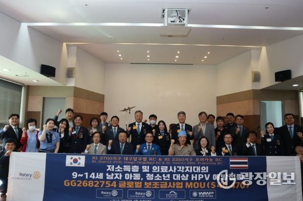 광장일보 주재영 기자 | 대구 수성구는 국제로타리 3700지구(대구달구벌로타리클럽), 여성메디파크병원과 지난 21일 저소득층 및 의료사각지대에 있는 남자 아동·청소년을 대상으로 ‘HPV(사람유두종바이러스) 예방접종 지원을 위한 업무협약’을 체결했다.