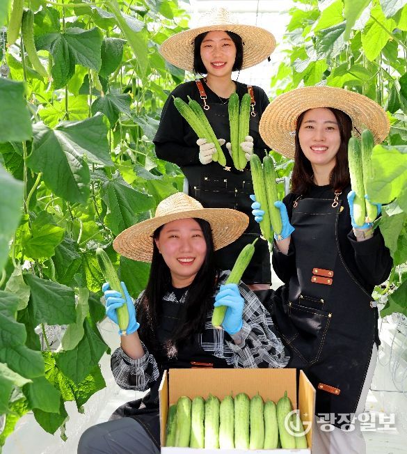 광장일보 이현나 기자 | 지난 24일 충북 괴산군 소수면 아성리의 한 스마트팜 연동하우스. 30도에 육박하는 하우스 열기 속에서 세 명의 젊은 여성이 오이 수확에 한창이다.