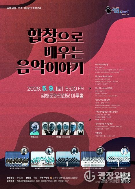 광장일보 주재영 기자 | 김해시립소년소녀합창단은 오는 9일 오후 5시 김해문화의전당 마루홀에서 기획공연 ‘합창으로 배우는 음악이야기’를 개최한다고 29일 밝혔다.