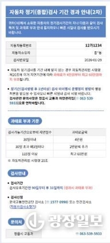 정읍시, 자동차 검사·보험 안내 ‘모바일 전자고지’ 13일 본격 시행