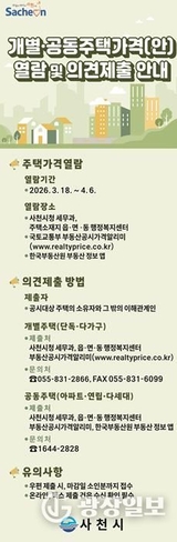 사천시, 개별·공동주택가격 열람 및 의견제출 기간 운영