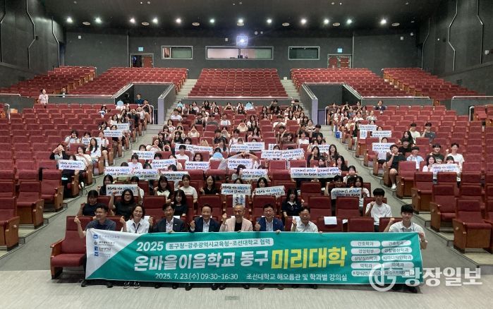 광장일보 주재영 기자 | 광주광역시교육청시민협치진흥원은 23일 조선대학교 해오름관 및 전공 강의실에서 동구 관내 고등학교 학생 150여 명이 참여한 가운데 ‘2025 온마을이음학교 동구 미리대학’을 운영했다.