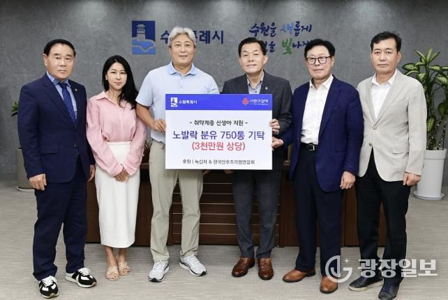 광장일보 나학천 기자 | ㈜녹십자와 한국산후조리원연합회가 “취약계층 가정에 전달해 달라”며 수원시에 분유 750통을 전달했다.
