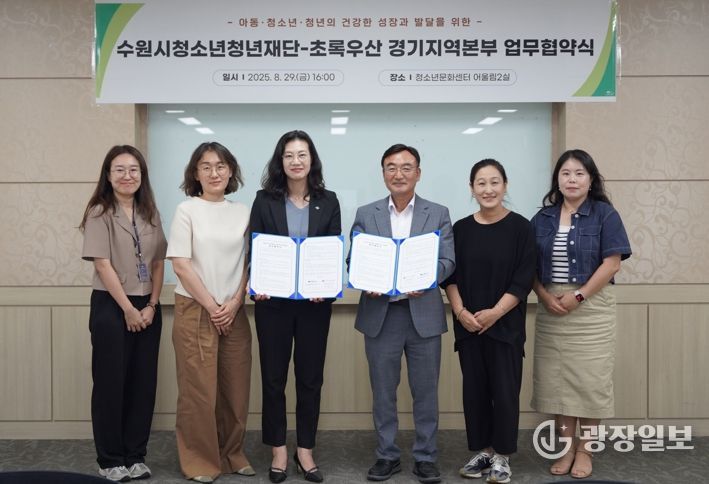 광장일보 나학천 기자 | 수원청소년청년재단은 초록우산 경기지역본부와 청소년·청년 대상 서비스 지원 강화를 위한 업무협약을 체결했다고 29일 밝혔다.