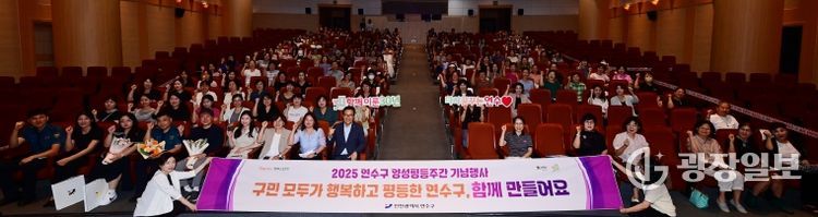 광장일보 주재영 기자 | 연수구는 지난 1일 연수아트홀에서 ‘구민 모두가 평등하고 행복한 연수구’를 주제로 양성평등정책에 대한 구민의 관심을 제고하고 양성평등 문화 확산을 위한 기념행사를 개최했다.