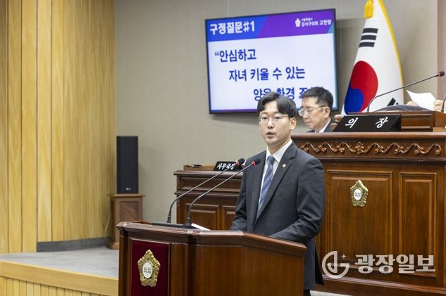 광장일보 주리아 기자 | 서울특별시 강서구의회 고찬양 의원(더불어민주당, 화곡1·2·8동)은 5일 열린 제313회 임시회 제2차 본회의 구정질문에서 “안심하고 아이 키우기 가장 좋은 도시, 부모에게 가장 든든한 도시를 만들기 위한 구청의 정책 의지와 실행 계획”을 촉구했다.