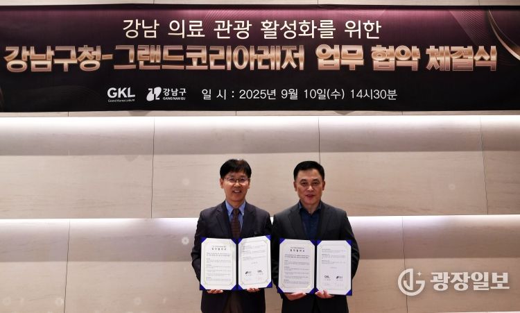 광장일보 주리아 기자 | 꿈이 모이는 도시, 미래를 그리는 강남구가 그랜드코리아레저(GKL)와 10일 세븐럭 코엑스점에서 의료관광 활성화를 위한 업무협약을 체결하고 외국인 환자 유치 확대에 나선다.