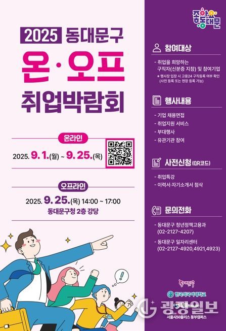 광장일보 주리아 기자 | 서울 동대문구는 관내 일자리 창출 및 구인구직난 해소를 위해 ‘2025 동대문구 온·오프 취업박람회’를 개최한다.