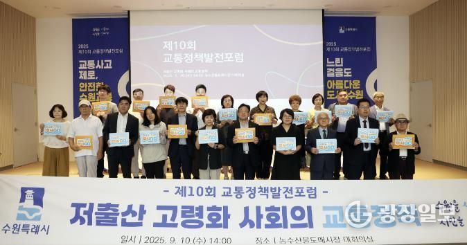 광장일보 나학천 기자 | 수원시는 10일 농수산물도매시장 대회의실에서 ‘제10회 교통정책발전포럼’을 열고, 고령화 사회에 대응한 교통정책 방향을 논의했다.