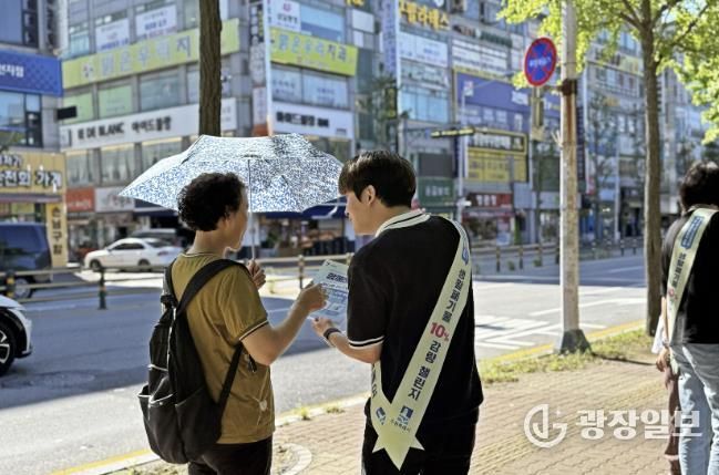 광장일보 나학천 기자 | 수원시 권선구 권선2동 행정복지센터는 지난 10일, 권선동 1189번지 일원(이마트 수원점 앞)에서 대시민 새빛 환경수호자 홍보 캠페인을 추진했다.