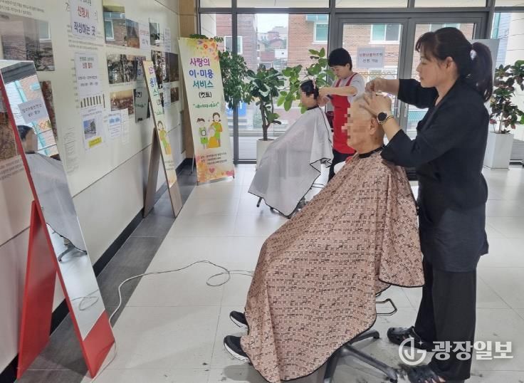 광장일보 나학천 기자 | 지난 9일 수원시 팔달구 지동행정복지센터와 지동 지역사회보장협의체는 저소득층 어르신들을 대상으로 사랑의 미용 봉사활동을 실시했다.
