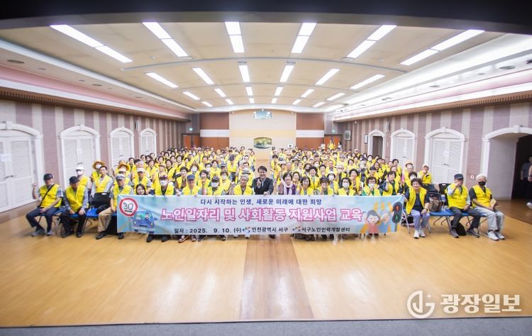 광장일보 주재영 기자 | 인천 서구는 어르신들의 교통안전 인식을 개선하고 교통사고를 예방하고자 서구노인인력개발센터 노인일자리사업 참여자 1,630명을 대상으로 9월 10일부터 9월 12일, 9월 19일까지 4일간 총 8회에 걸쳐 어르신 교통안전교육을 실시한다고 밝혔다.