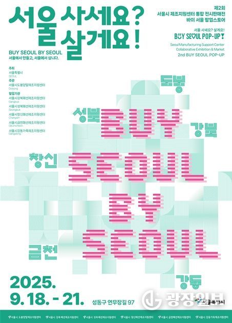 서울시는 전통 봉제에 첨단기술을 더한 도시 제조업 경쟁력을 알리기 위해 9월 18일부터 21일까지 4일간 성수동 SS33(연무장길 97)에서 ‘서울 사세요? 서울 살게요! buy SEOUL by SEOUL’(‘서울 사세요’) 팝업스토어를 운영한다고 밝혔다.