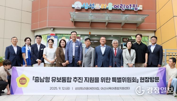 광장일보 주재영 기자 | 충남도의회 ‘충남형 유보통합 추진 지원을 위한 특별위원회’는 12일 제4차 회의와 연계해 아산시 삼성트라움어린이집과 육아종합지원센터 현장을 방문했다. 이날 유보특위는 운영 현황을 점검하고 유보통합 추진과정에서 제기된 과제와 개선 방안을 모색했다.