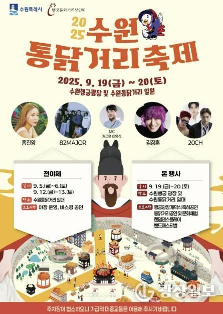 광장일보 나학천 기자 | 수원시는 9월 19일과 20일 화성행궁광장과 남수동 수원 통닭거리 일원에서 ‘2025 수원 통닭거리 축제’를 개최한다.