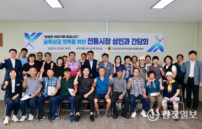 광장일보 주재영 기자 | 전남도의회 예산결산특별위원회는 지난 9월 12일 화순 능주전통시장 상인회 회의실에서 지역 상인들과 간담회를 열고, 골목상권 회복을 위한 현장 소통에 나섰다.