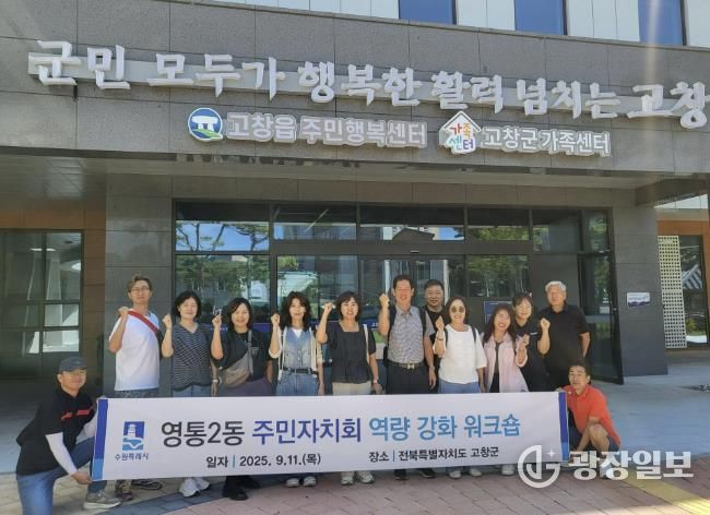 광장일보 나학천 기자 | 수원시 영통구 영통2동 주민자치회는 지난 11일 전북특별자치도 고창군 일원에서 주민자치 역량을 강화하기 위한 2025년 주민자치회 워크숍을 개최했다고 밝혔다.