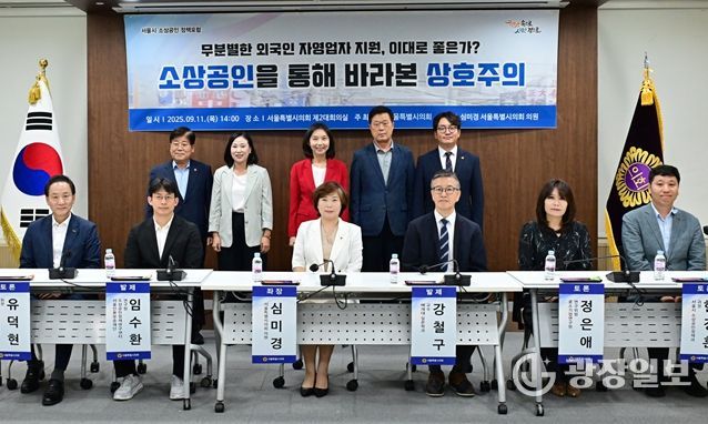 광장일보 주리아 기자 | 심미경 서울시의원(동대문2·국민의힘)이 지난 11일 '소상공인을 통해 바라본 상호주의' 토론회를 개최했다. 이번 토론회는 서울시의 외국인 자영업자 지원 정책을 점검하고, 상호주의 원칙에 기반한 공정하고 균형 잡힌 정책방향을 모색하기 위해 마련됐다.