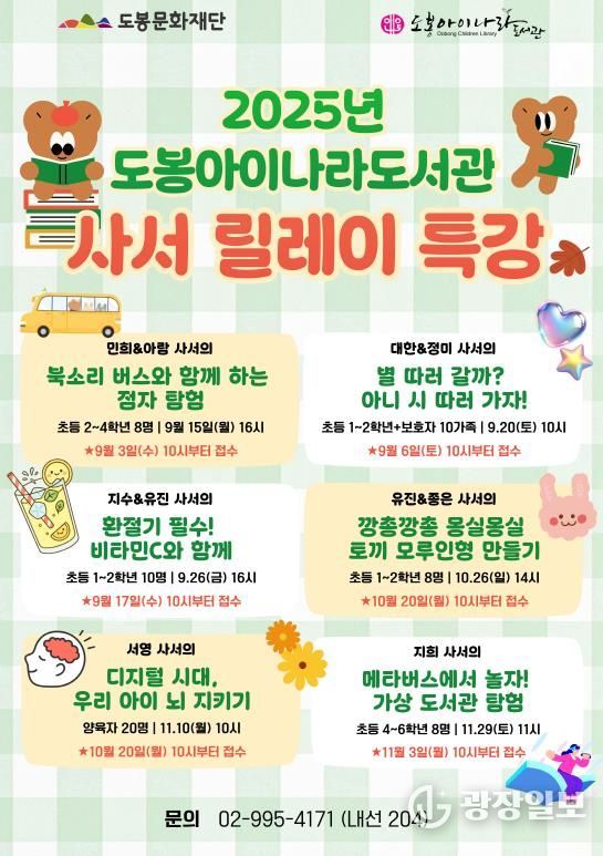 광장일보 주리아 기자 | 서울 도봉구도봉아이나라도서관이 ‘사서 릴레이 특강’을 운영한다.