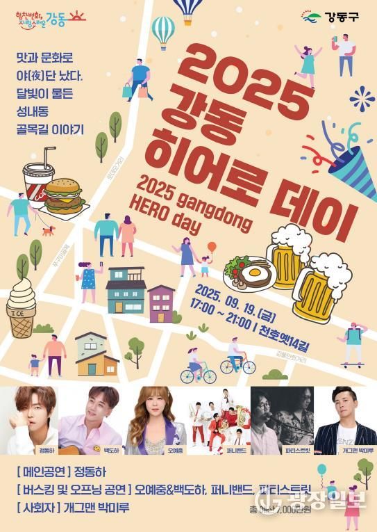 광장일보 주리아 기자 | 강동구가 오는 9월 19일 오후 5시부터 9시까지 성내동 천호옛길 일대에서 지역 골목상권 활성화를 위한 골목 축제 ‘2025 강동히어로 데이!!’를 개최한다고 15일 밝혔다.