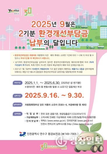 광장일보 주재영 기자 | 연수구는 경유 자동차 5천335대에 올해 2기분 환경개선부담금 4억 1천만 원을 부과했다.