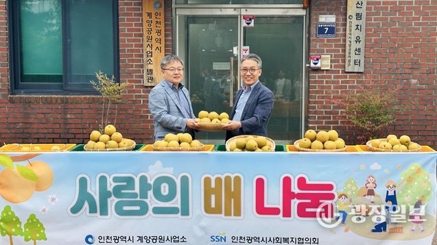 광장일보 주재영 기자 | 인천광역시 계양공원사업소는 서구 연희동 연희공원 별관에서 장고개공원 배나무 단지에서 수확한 배를 지역사회에 기부하는 행사를 개최했다고 밝혔다.