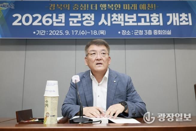 광장일보 주재영 기자 | 예천군은 17일 오전 9시 군청 중회의실에서 군수 주재로 ‘경북의 중심! 더 행복한 미래 예천’ 구현을 위한 '2026년 군정 시책보고회'를 개최했다.