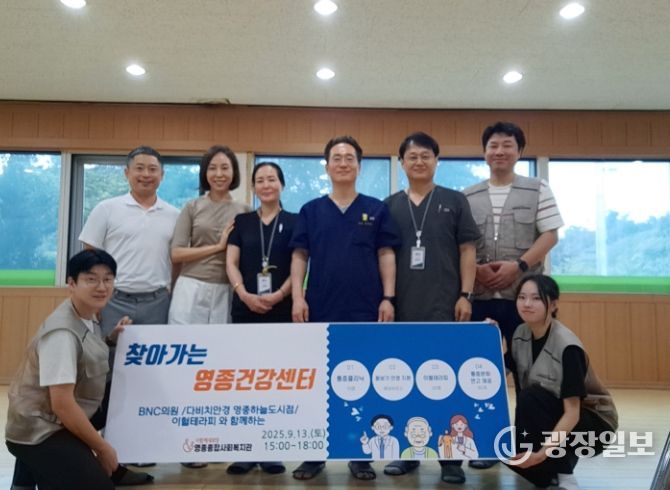 광장일보 주재영 기자 | 인천 중구 영종종합사회복지관은 지난 13일 협력 기관인 BNC의원(원장 김경훈), 다비치안경 영종하늘도시점과 함께 무의지역 어르신을 대상으로 ‘찾아가는 영종건강센터’를 운영했다고 밝혔다.
