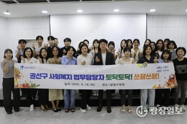 광장일보 나학천 기자 | 수원시 권선구는 지난 16일, 일월수목원에서 권선구 사회복지 담당 직원 30명이 참여한 가운데 2025년 하반기 권선이음을 실시했다.
