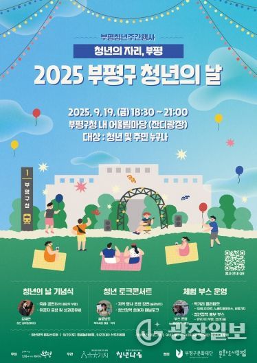 광장일보 주재영 기자 | 부평구는 청년의 날(9월 20일)을 맞아 오는 19일부터 25일까지 청년주간행사 ‘청년의 자리, 부평’을 개최한다고 밝혔다.