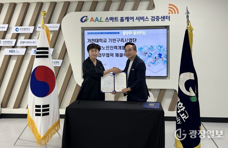 광장일보 주재영 기자 | 인천 미추홀노인인력개발센터(센터장 김태화)는 지난 16일 가천대학교 기반구축사업단(단장 이은석)과 ‘취약계층 친화적 지능형 홈케어 서비스 개발 및 실용화 기반 구축과 노인 일자리 창출’을 위한 업무협약을 체결했다.