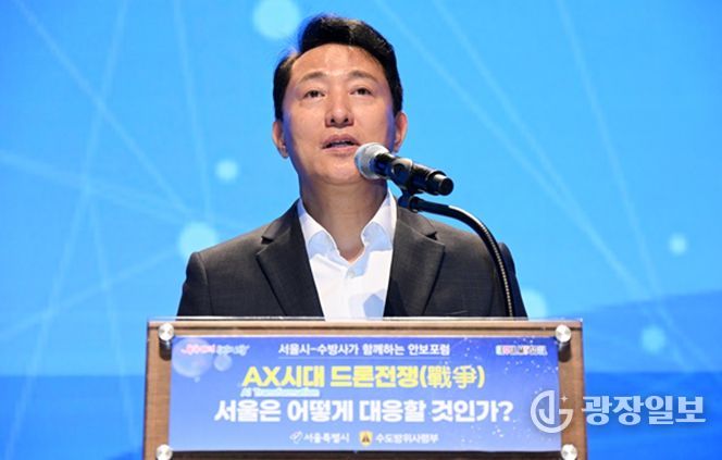 이날 포럼에서 오 시장은 “우크라이나 전쟁에서 드론이 전장의 게임체인저임을 직접 목격했고, 북한의 드론 전술 고도화 등 드론 위협은 현실이 됐다”며 “이제는 실전형 민‧군 협력방안부터 AI기반 탐지와 무력화 기술까지, 대응체계를 구체화할 때”라고 말했다.