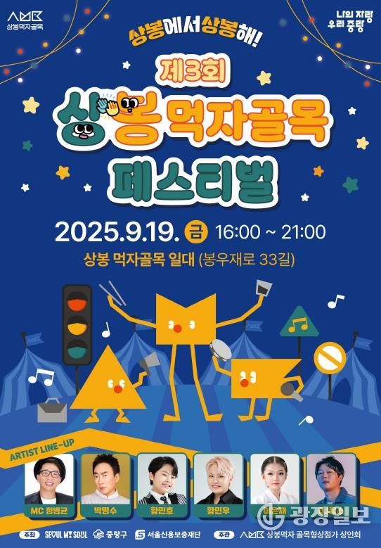 같은 날 상봉먹자골목(봉우재로33길 일대)에서는 ‘제3회 상봉먹자골목 페스티벌’이 열린다. 이번 행사는 서울시 로컬브랜드 상권 육성사업의 일환으로 추진됐으며, 서울시, 중랑구, 서울신용보증재단이 공동으로 주최한다.