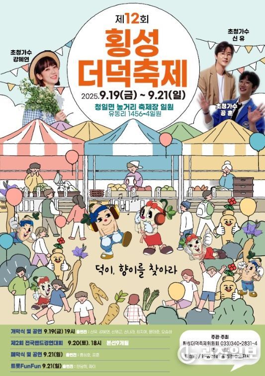 광장일보 이현나 기자 | 전국 유일의 ‘더덕’을 주제로 한 향토축제인 제12회 횡성더덕축제가 오는 9월 19일부터 21일까지 3일간, 청정 자연이 살아 있는 청일면 농거리 축제장 일원에서 열린다.
