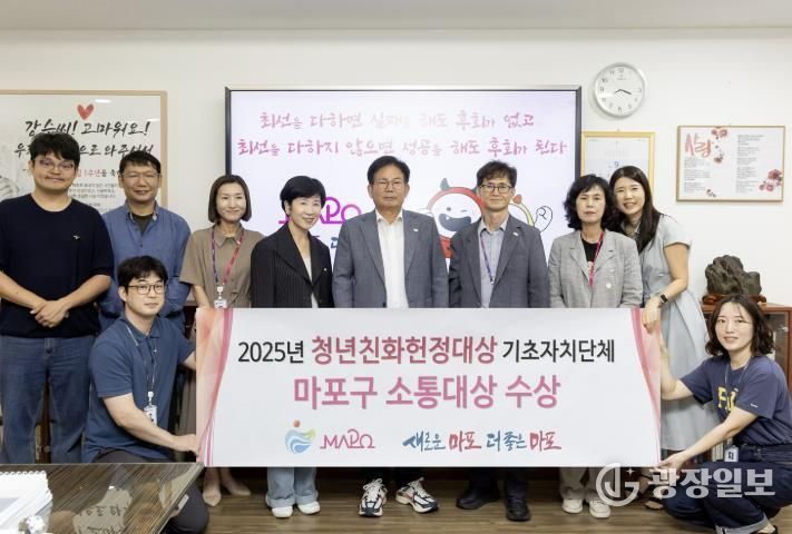 광장일보 주리아 기자 | 마포구는 지난 13일, 국회 사무처 소관 (사)청년과미래가 주관한 ‘2025년 제8회 청년친화헌정대상’ 소통부문에서 대상을 수상했다.