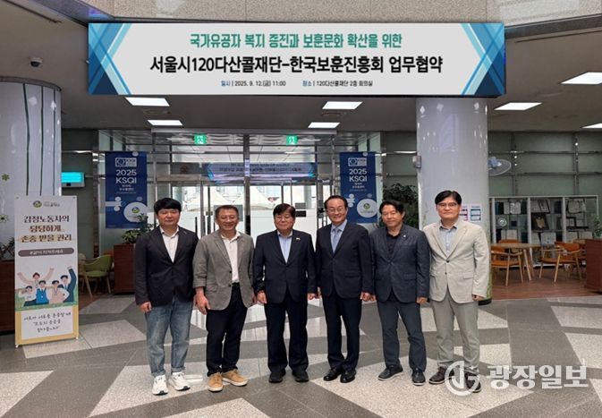 광장일보 주리아 기자 | 서울시 120다산콜재단은 12일 사단법인 한국보훈진흥회와 국가유공자 및 유가족의 삶의 질 향상과 보훈문화 확산을 위한 업무협약(MOU)을 체결했다고 밝혔다.