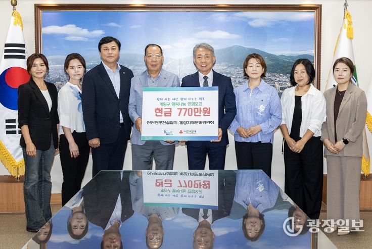 광장일보 주재영 기자 | 인천광역시 계양구는 9월 17일, 인천전문건설협회 계양지역분과위원회에서 기후위기 취약계층을 지원을 위해 성금 770만 원을 기탁했다고 밝혔다.