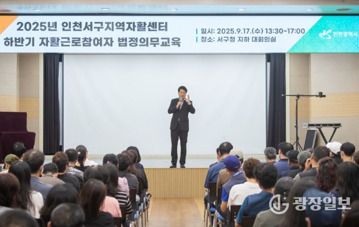 광장일보 주재영 기자 | 인천 서구는 지난 17일 인천서구지역자활센터가 자활사업단 참여자 180여 명을 대상으로 하반기 법정의무교육을 실시했다고 18일 밝혔다.
