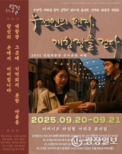 광장일보 주재영 기자 | 뮤지컬 '우전인의 편지, 개항장을 걷다'가 오는 2025년 9월 20일~21일 ≪2025 인천 개항장 국가유산 야행≫ 기간 중 개항장 일대에서 다시 선보인다.