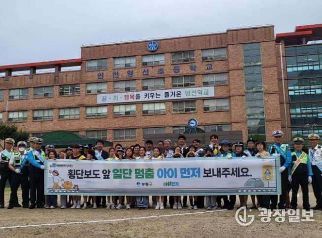 광장일보 주재영 기자 | 부평구는 18일 영선초등학교 앞에서 ‘어린이 교통안전 캠페인’을 진행했다.