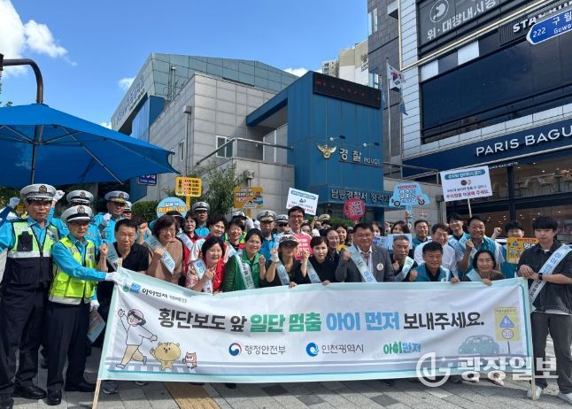광장일보 주재영 기자 | 인천광역시는 9월 18일 남동구 정각사거리 어린이보호구역에서 하교 시간대 어린이들의 안전한 보행을 돕기 위한 ‘아이먼저’ 어린이 교통안전 합동 캠페인을 전개했다고 밝혔다.