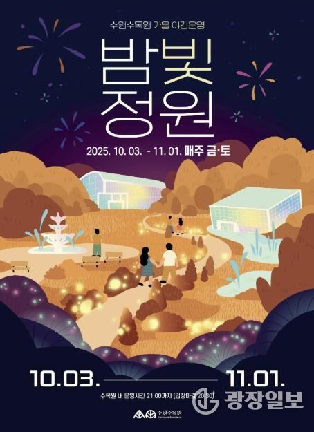 광장일보 나학천 기자 | 수원시는 10월 3일부터 11월 1일까지 매주 금·토요일 ‘2025년 수원수목원 가을 야간 운영 밤빛 정원’을 연다.