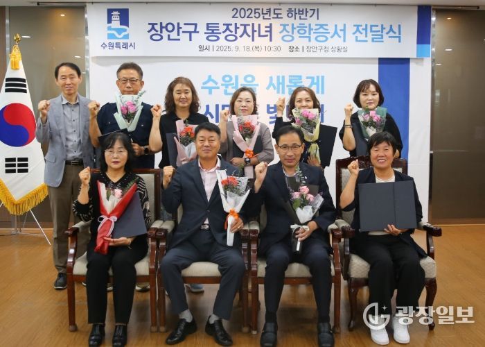 광장일보 나학천 기자 | 수원시 장안구는 지난 18일, 장안구청 상황실에서 2025년 하반기 통장자녀 장학증서 전달식을 개최했다.