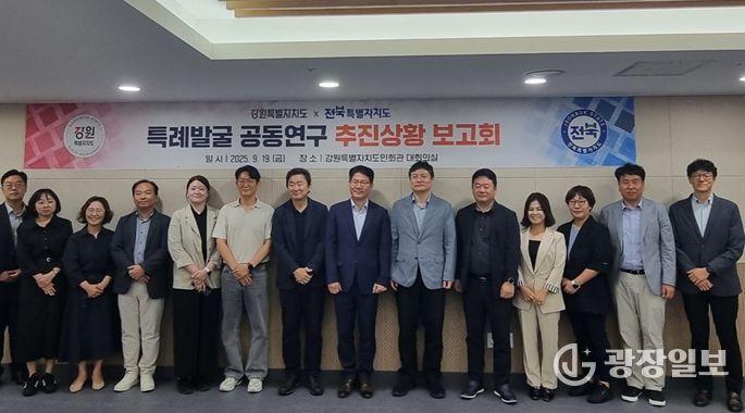 광장일보 이현나 기자 | 강원특별자치도는 9월 19일 오전 10시 강원특별자치도민회관 대회의실에서 전북특별자치도와 함께 '특례 발굴 공동연구 추진상황 보고회'를 개최했다고 밝혔다.